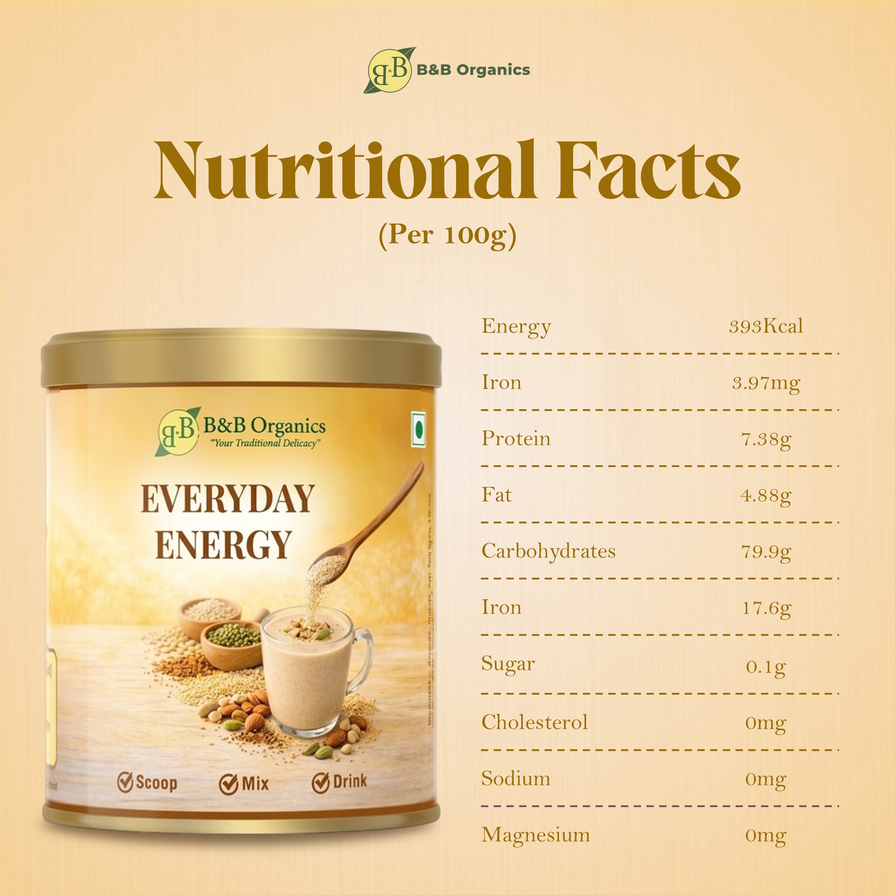 B&B Organics Daily Delight Choco Health Mix is a nutritious chocolate-flavored health drink made with traditional grains, nuts, and seeds. Packed with natural protein, fiber, and...