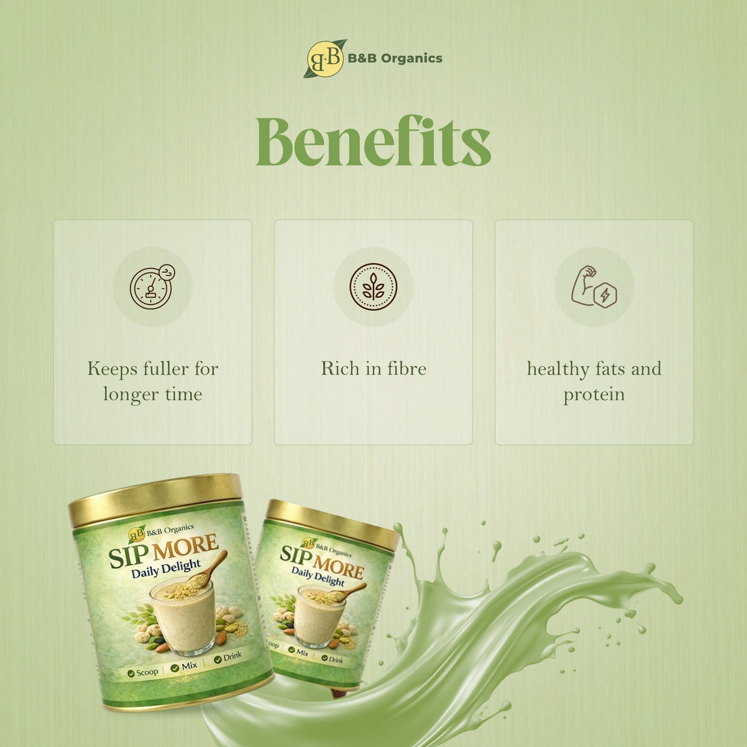B&B Organics Sip More Daily Delight Health Mix is a wholesome blend of traditional grains, nuts, and seeds crafted to provide daily nutrition and natural energy. Rich in carbohydrates, protein, and essential minerals, it is a perfect health drink for everyday wellness.